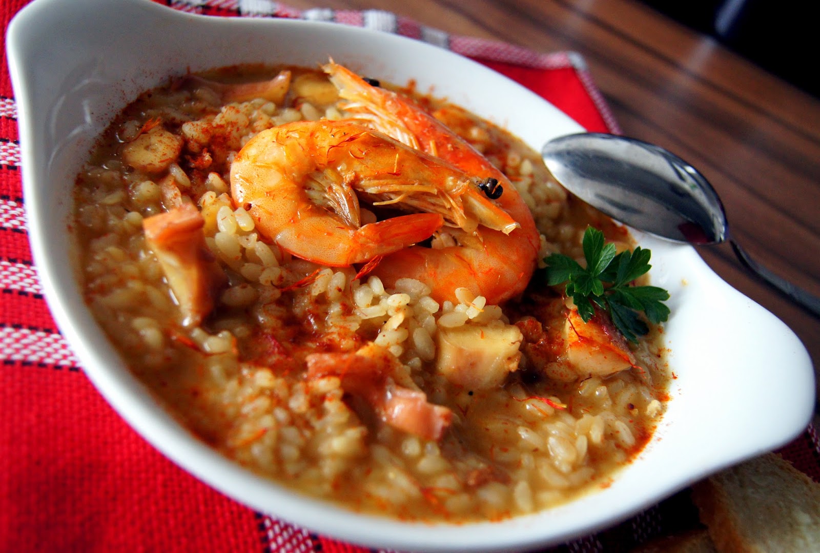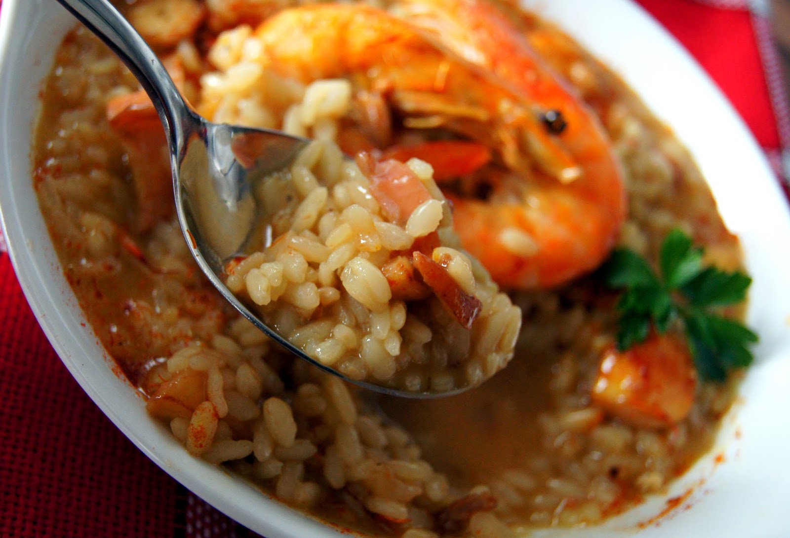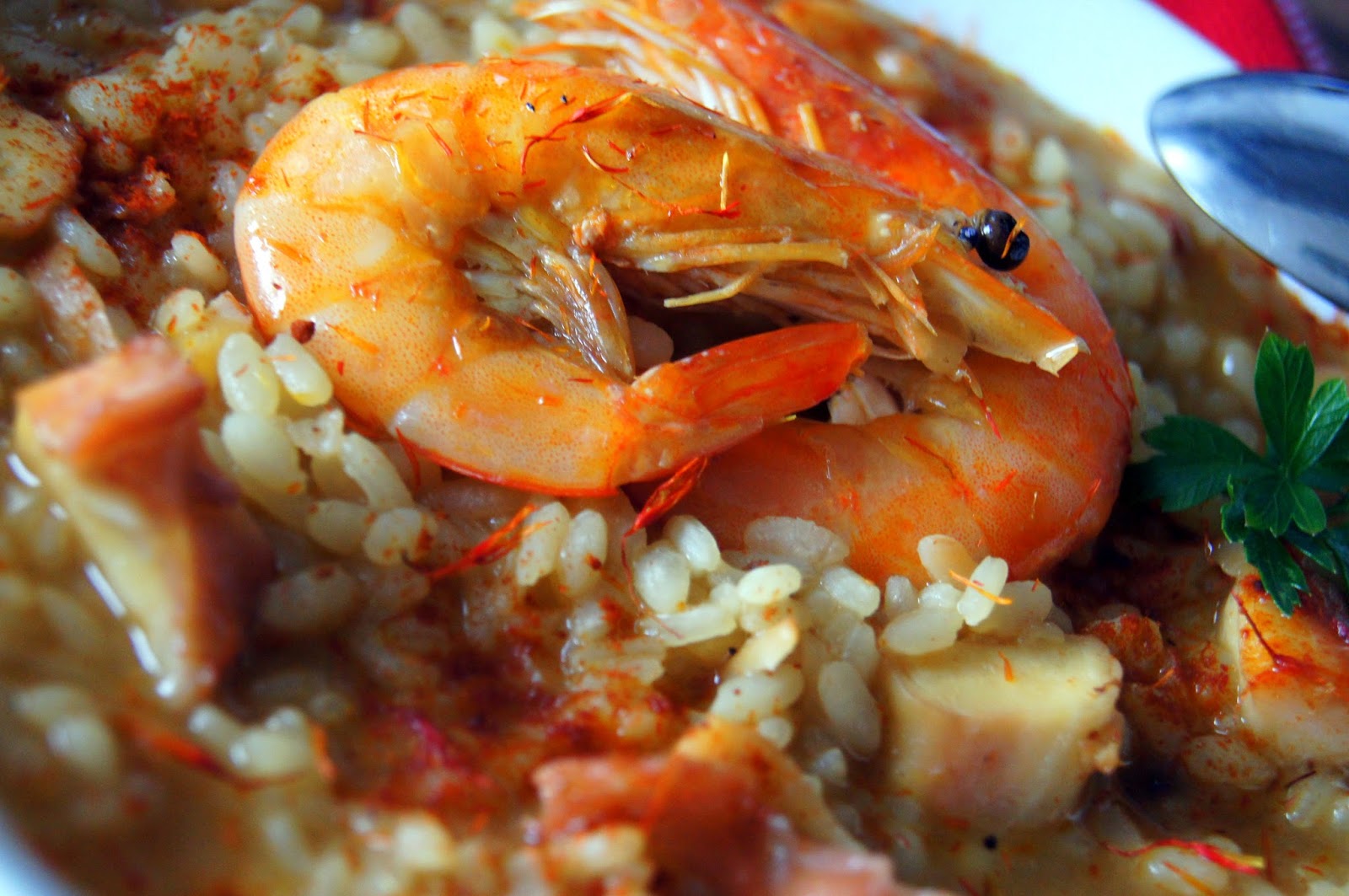 la cocina de aficionado: Arroz caldoso de langostinos y refrito de pulpo