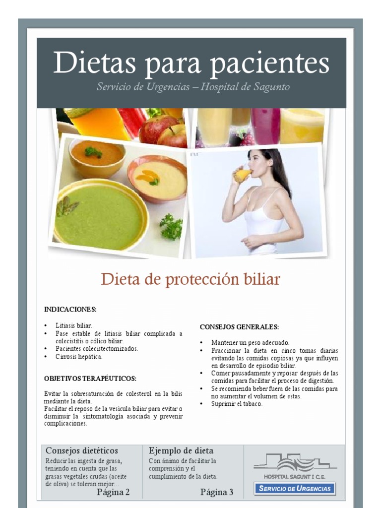 WebDIETA DE PROTECCION BILIAR Recomendaciones generales: • Coma lentamente y mastique bien. • Evite las grasas en todas sus formas. • Coma en pequeñas cantidades.. WebLa dieta en el postoperatorio: 1.- Inicio de ingesta líquida a las 24 horas. 2.- Si se tolera, a las 48 horas, dieta semilíquida biliar baja en grasa (media ración). 3.- A las 72 horas,. WebCOMISIÓN DE NUTRICIÓN Hospital Clínico de Granada DIETA DE PROTECCIÓN BILIAR DIETA DE PROTECCIÓN BILIAR Esta dieta se corresponde, con algunas. WebCereales integrales. Verduras excepto la col, el repollo, las alcachofas, la cebolla y el pimiento crudo. Frutas que estén frescas y maduras. Sin embargo, se puede. WebSi ya se ha operado y se le ha quitado la vesícula (colcistectomía), deberá seguir esta dieta durante el primer mes tras la operación e ir introduciendo nuevos alimentos a partir de. WebLa dieta se elaborará restringiendo alimentos ricos en grasa, frituras y formas culinarias complejas (guisos, salsas, estofados, postres grasos), y algunos otros que. WebLa dieta en el postoperatorio: 1. Inicio de ingesta líquida a las 24 horas. 2. Si se tolera, a las 48 horas, dieta semilíquida biliar baja en grasa (media ración). 3. A las 72 horas, dieta. WebAlimentos Permitidos tras operación de vesícula por laparoscopia: Carnes Magras de ternera o vaca y Carne de ave. Pescados blancos. Huevos (1-2 a la semana,.