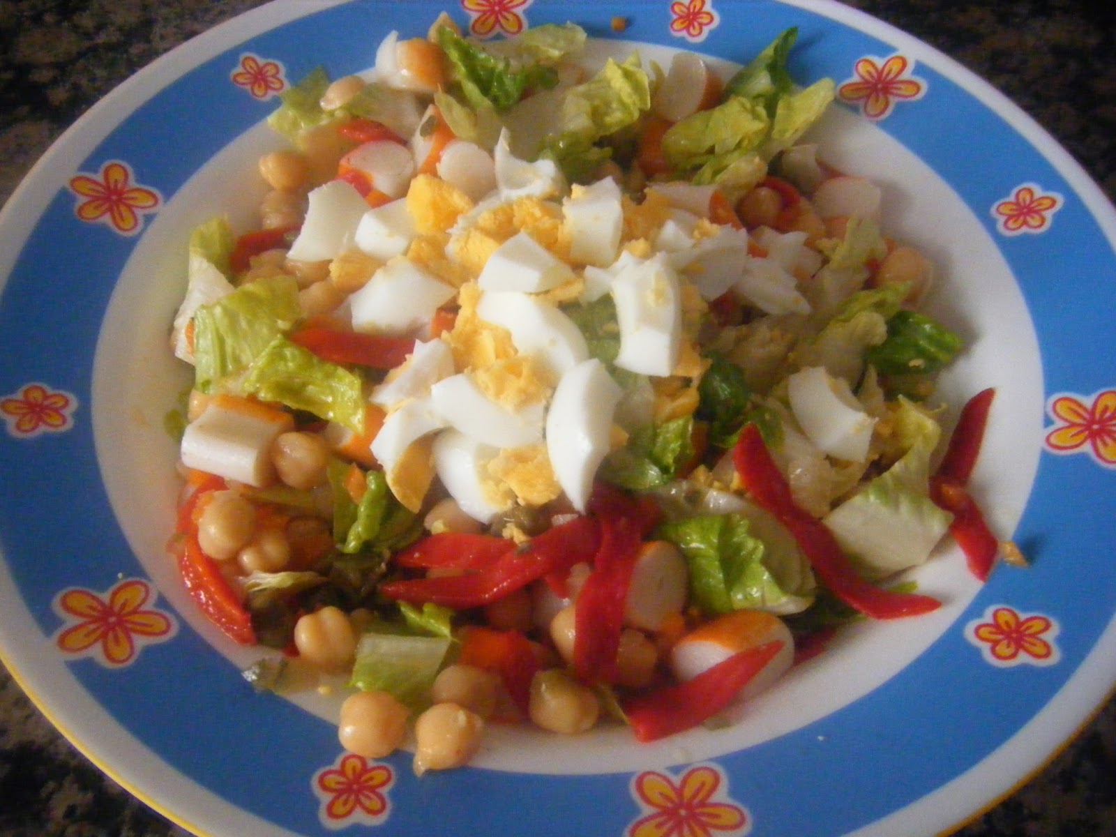 recetas sencillas 2: ENSALADA DE GARBANZOS CON PALITOS DE CANGREJO