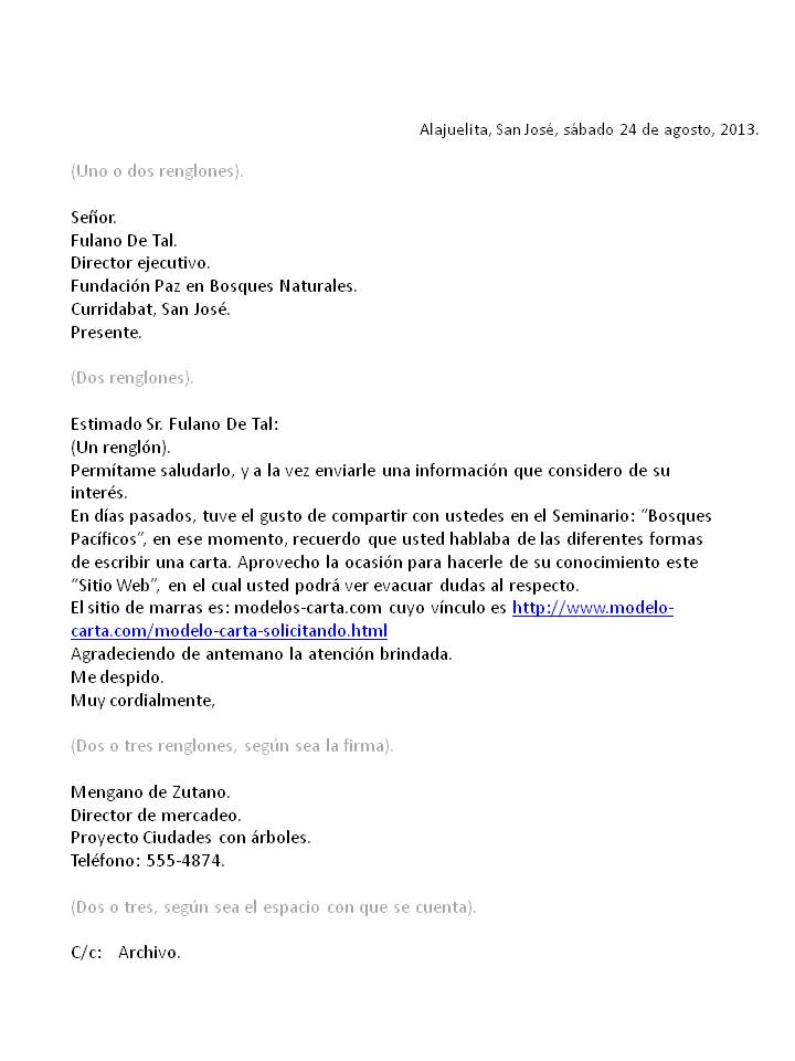 WebModelo Carta familiar. Un modelo carta familiar se utiliza para comunicarse personas unidas mediante un vínculo de amistad o de tipo familiar. Invitaciones a ceremonias o. WebEjemplo de carta para informativa de apertura: Zapaterías El Zapatón S.A. de C.V. Calle cerrada del ciego, Colonia no me olvides, México D.F. 18 de Julio de 2013. A todos.